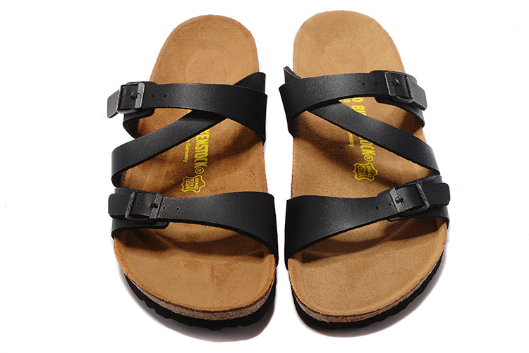 Birkenstock Black Thin Belt Double Buckle Matte Leather Sandals