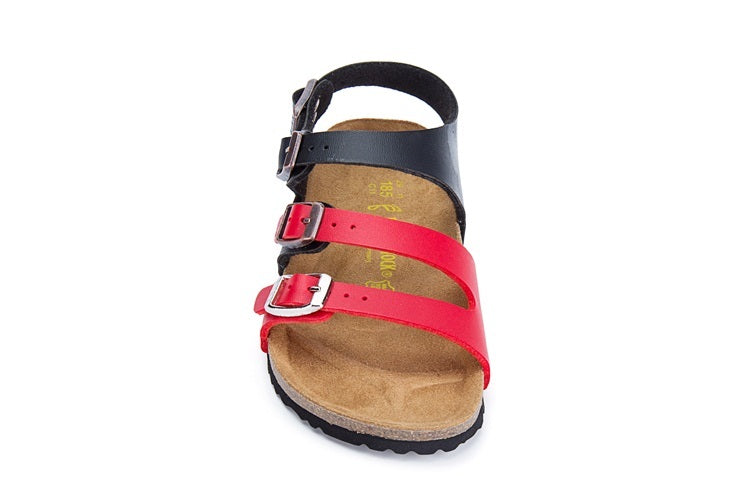 Birkenstock Ellice Three-Button Black/Red Color match Matte Leather Strappy Sandals
