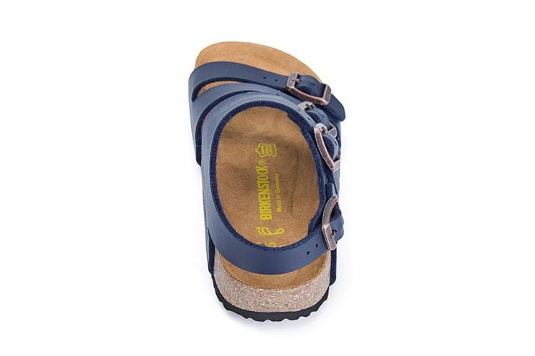 Birkenstock Ellice Three-Button Blue Matte Leather Strappy Sandals