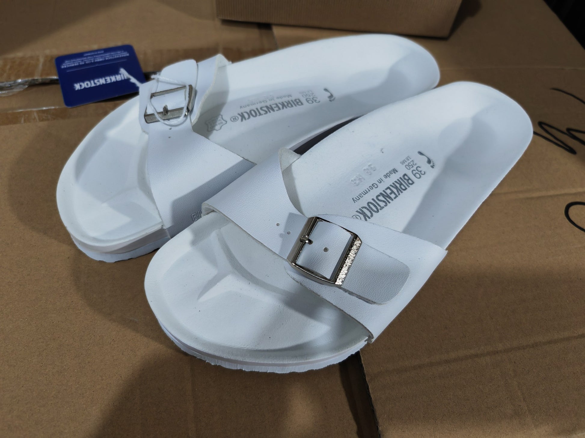 Birkenstock Single Button Pure White Matte Leather Slippers