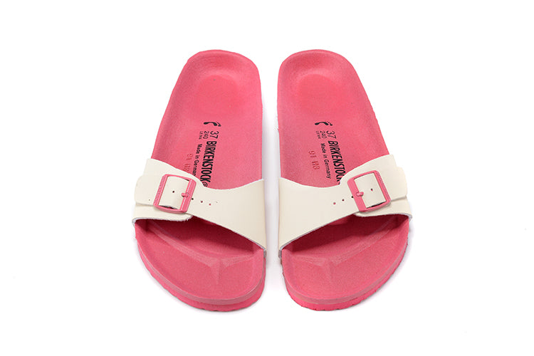 Birkenstock Single Button White Matte Leather Pink Sole Slippers