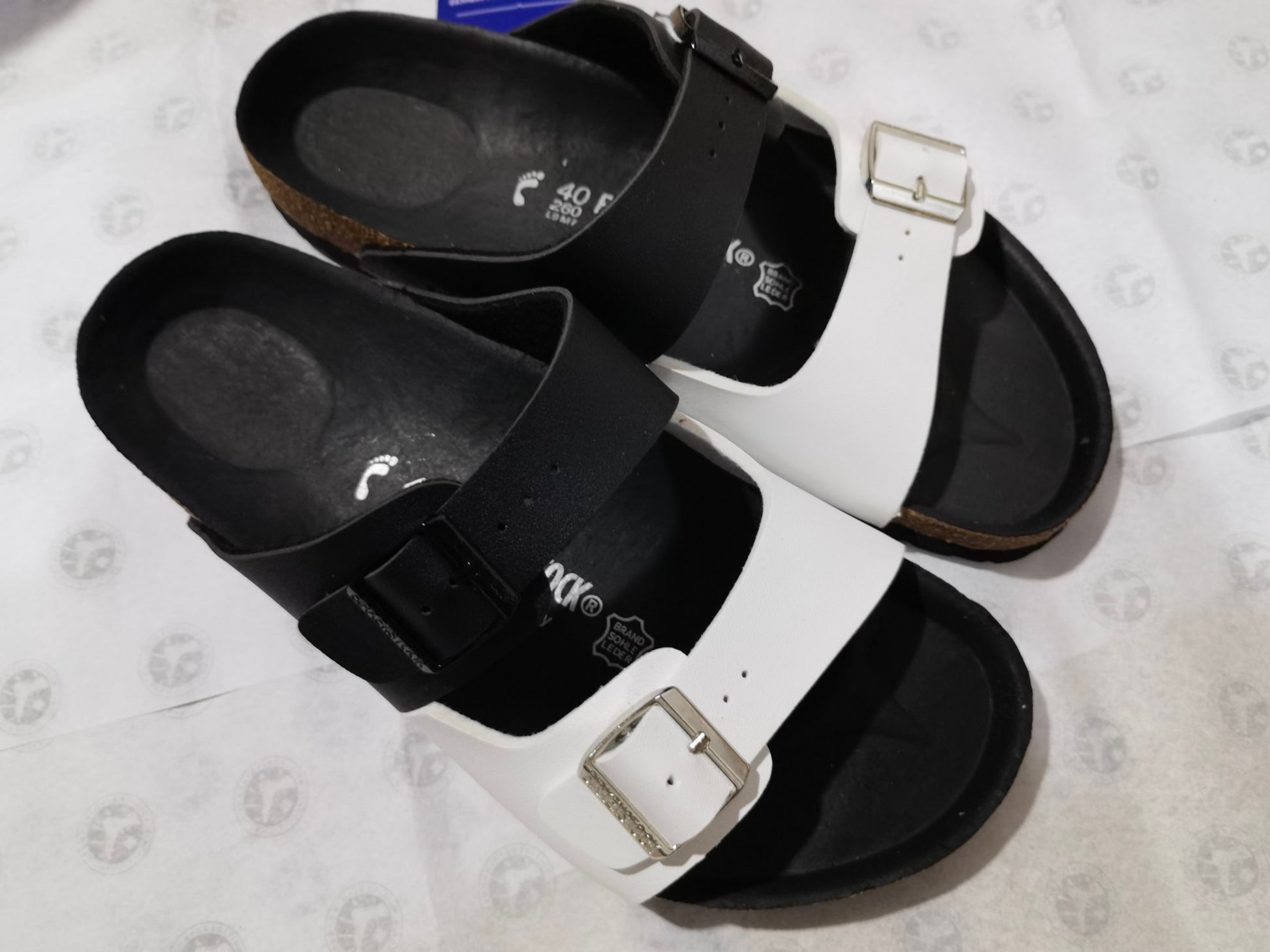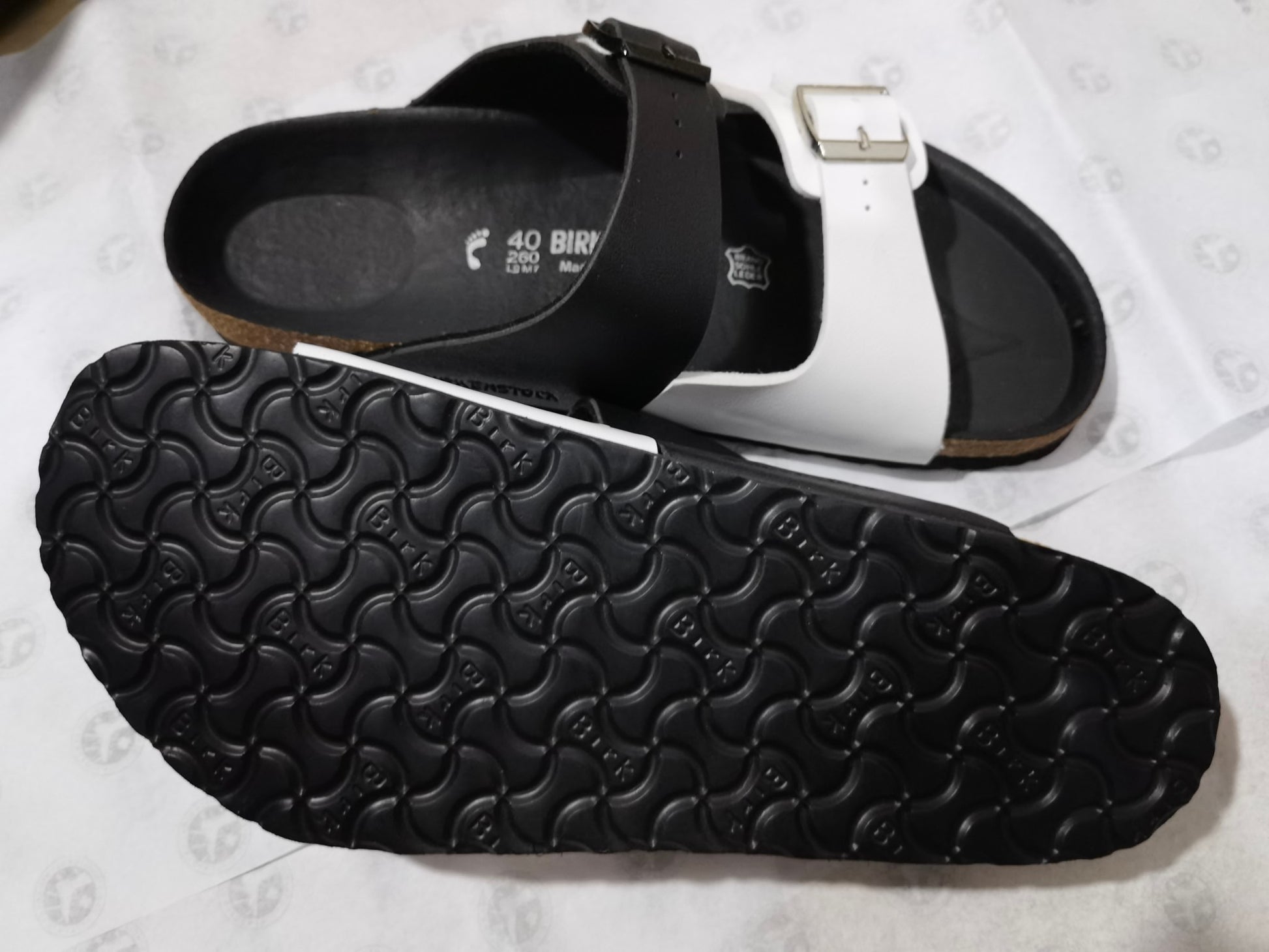 Birkenstock Two-Button Black White Dual Color Matte Leather Slippers
