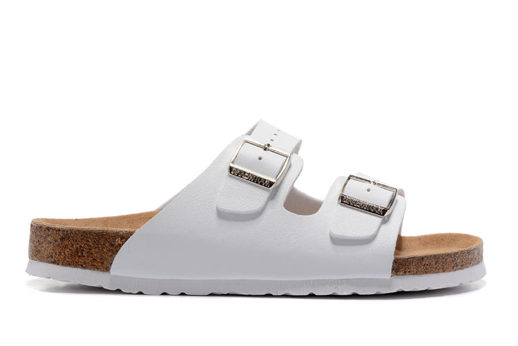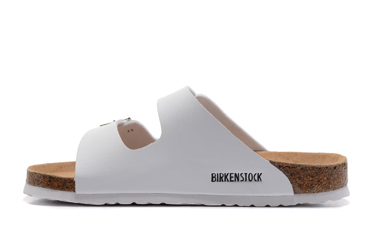 Birkenstock Two-Button White Matte Leather White Sole Slippers