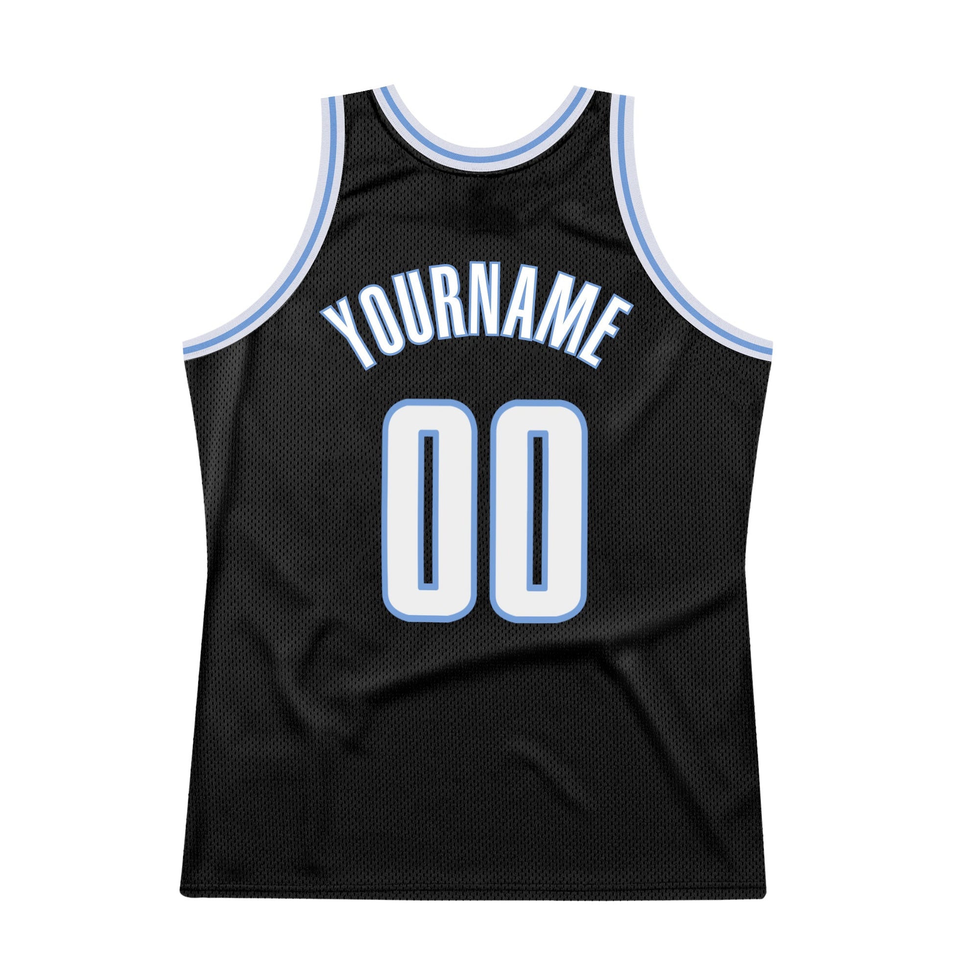 Custom Black White-Light Blue Authentic Throwback Basketball Jersey
