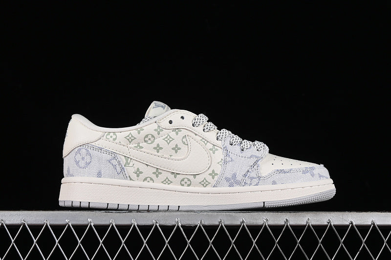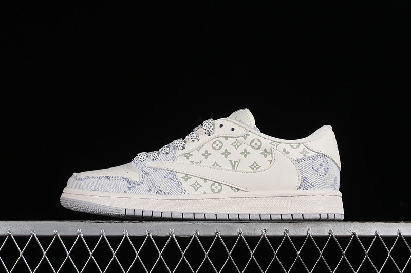 Nike Air Jordan 1 Low Travis Scott Fragment Design LV Light Blue Printing White Sneakers