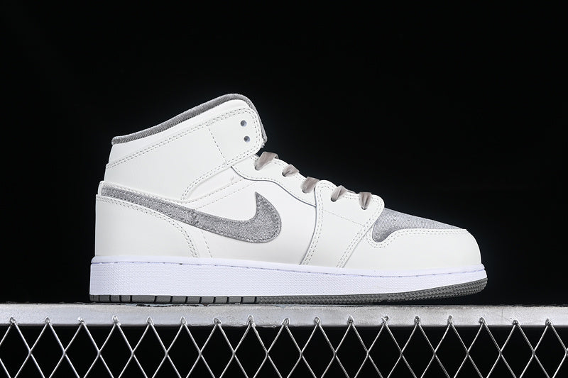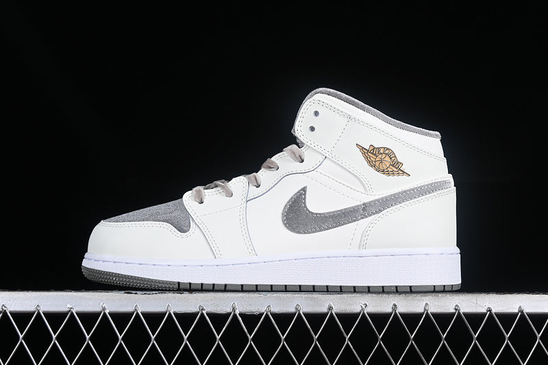 Nike Air Jordan 1 Mid SE GS Metallic Gold Grey White Sneakers