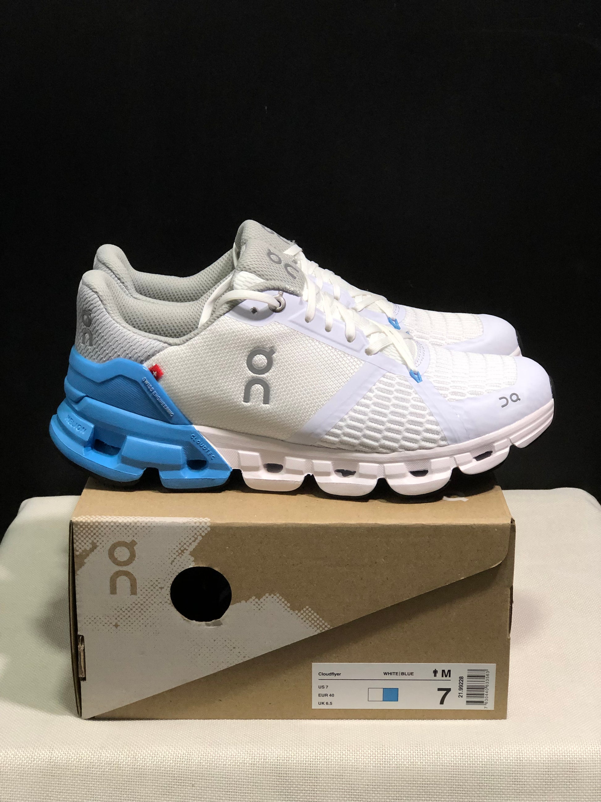 On Running Cloudflyer Shock-Absorbing Running Shoes White/Light Grey/Blue