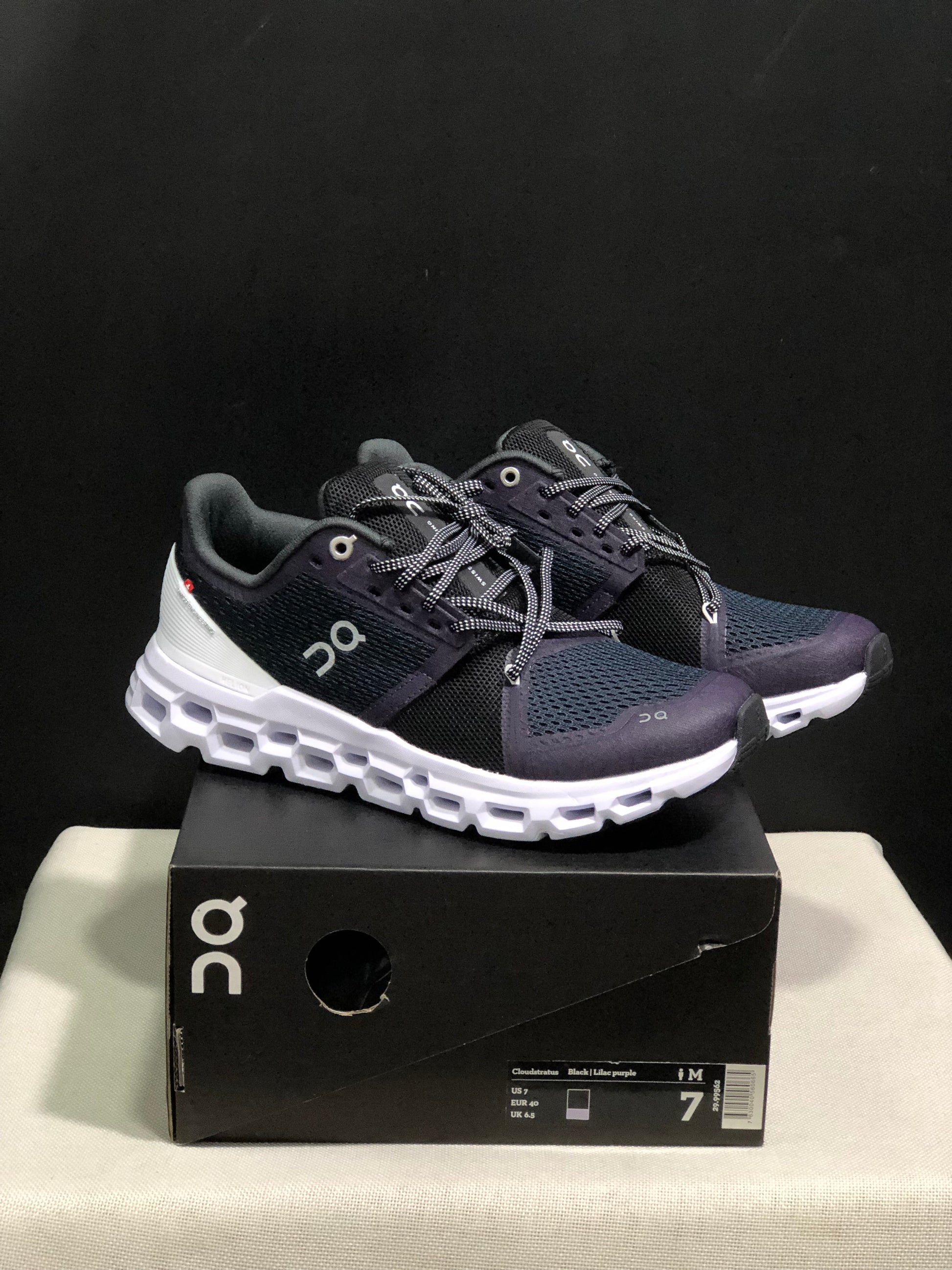 On Running Cloudstratus Shock-Absorbing And Breathable Running Shoes Black/Dark Purple